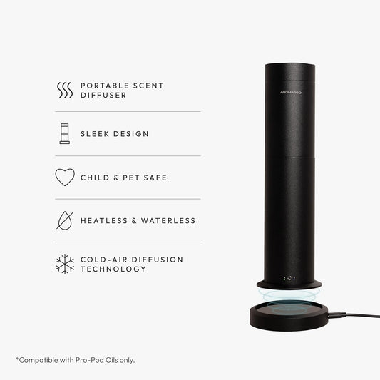 - Wireless Pro Essential Oil Diffuser - 600 Sq Ft Coverage - Cordless & Portable with Remote - Aromatherapy Scent Diffuser - Home, Spa, Office & Business - Air Freshener - Midnight Black