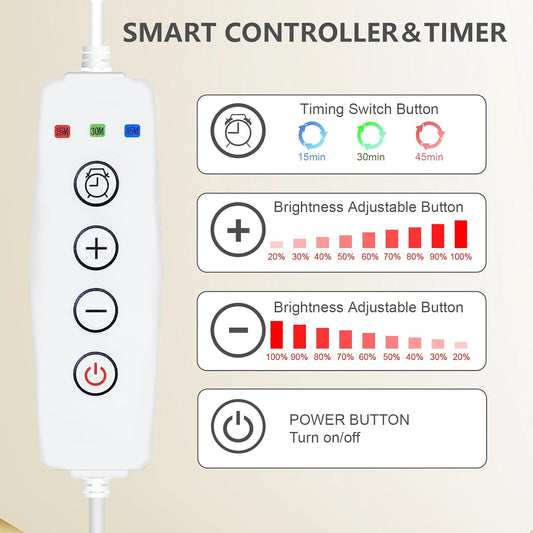 Red Light Therapy for Face, 660Nm & 850Nm & 940Nm Infrared Light Therapy, Height Adjustable & Angle Adjustable & Timer, 100Leds Red Light Therapy Lamp for Home Use